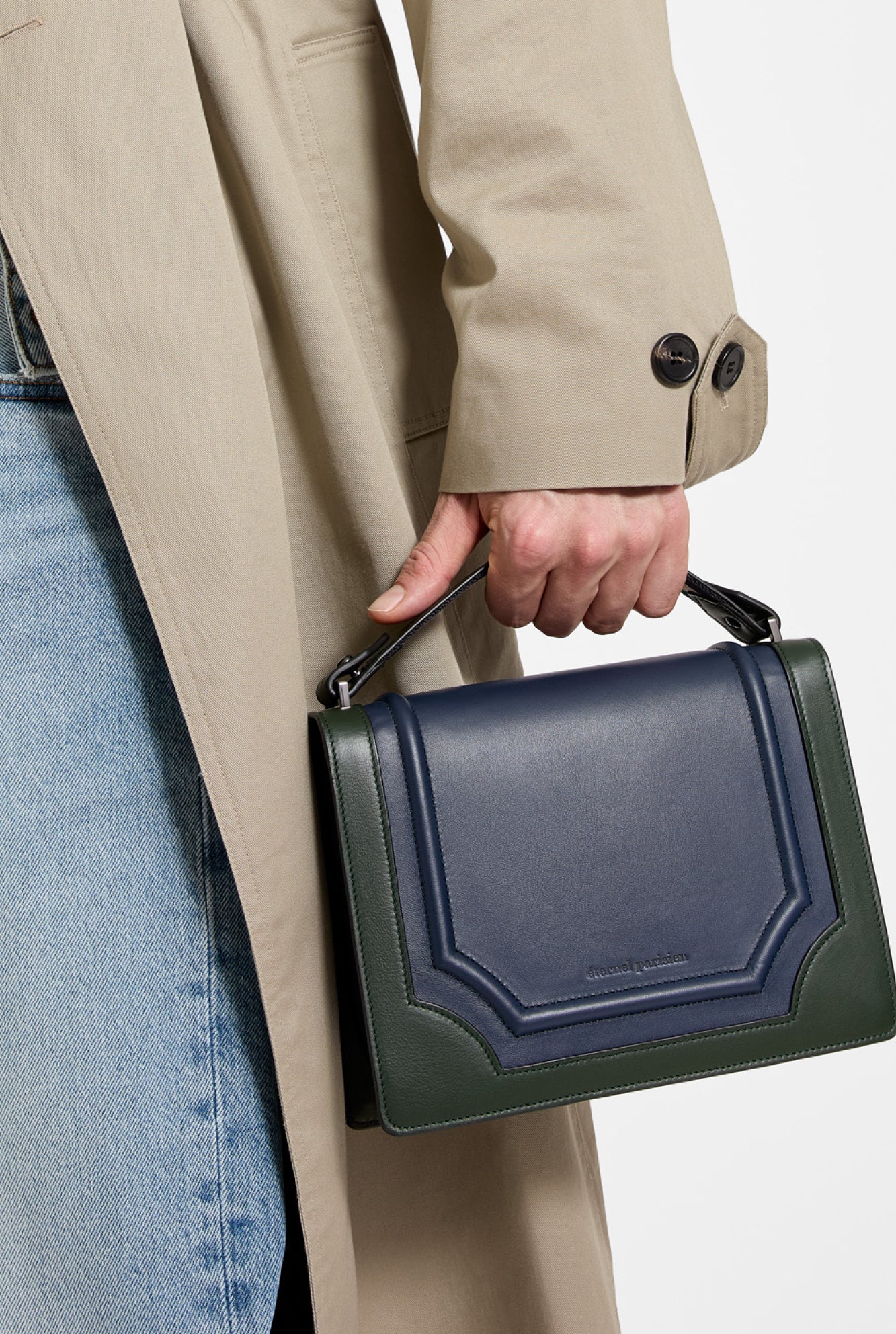 Bandoulière amovible en cuir, doublée de sangle tricolore, pour un porter épaule ou cross-body